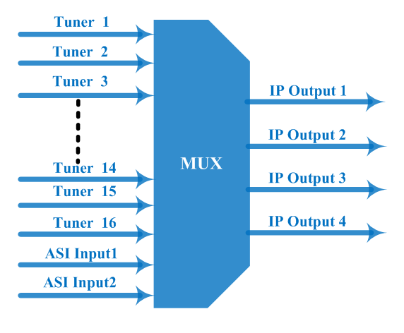NDS3107G ресивер ремультиплексор. Входы: 16 х FTA DVB-C/T/(T2)/S/S2/S2X, 2 x ASI. Выходы: 4 х IP MPTS.
