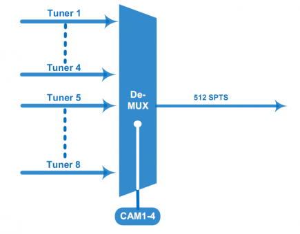 Многоканальный цифровой ресивер NDS358xA. Входы: 4 x FTA DVB-C/T/(T2)/S/S2/S2X, 4 x CI DVB-C/T/(T2)/S/S2/S2X. 4 CI слота. Поддержка BISS. Выходы: 512 х IP SPTS.